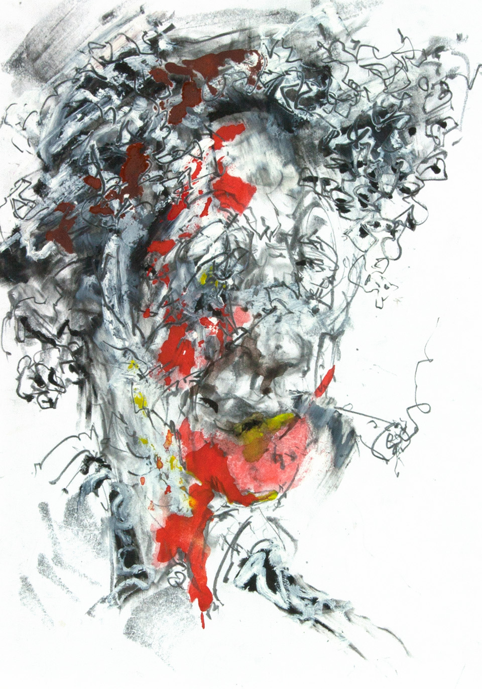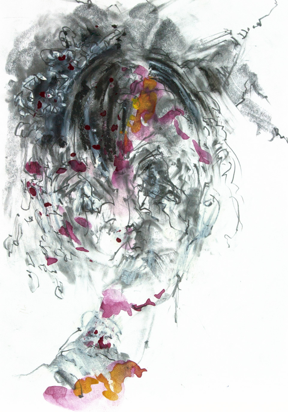 Diese Arbeiten entstanden unter dem Einfluss der „Corona-Krise“. Auf den Straßen, aber speziell in Supermärkten sah ich mich einer Gruppe von Mitmenschen gegenüber, die auf den ersten Blick zwar äußerlich ruhig erschienen, man ihnen bei genauerer Betrachtung aber die Angst von Ansteckung ansah. Manche schienen innerlich zu schreien.
