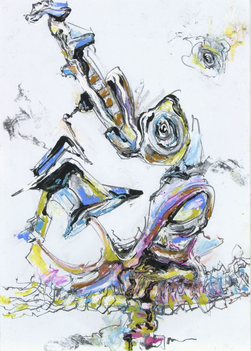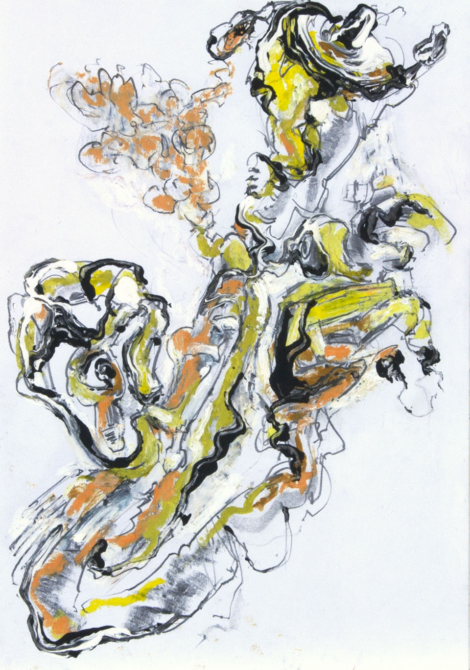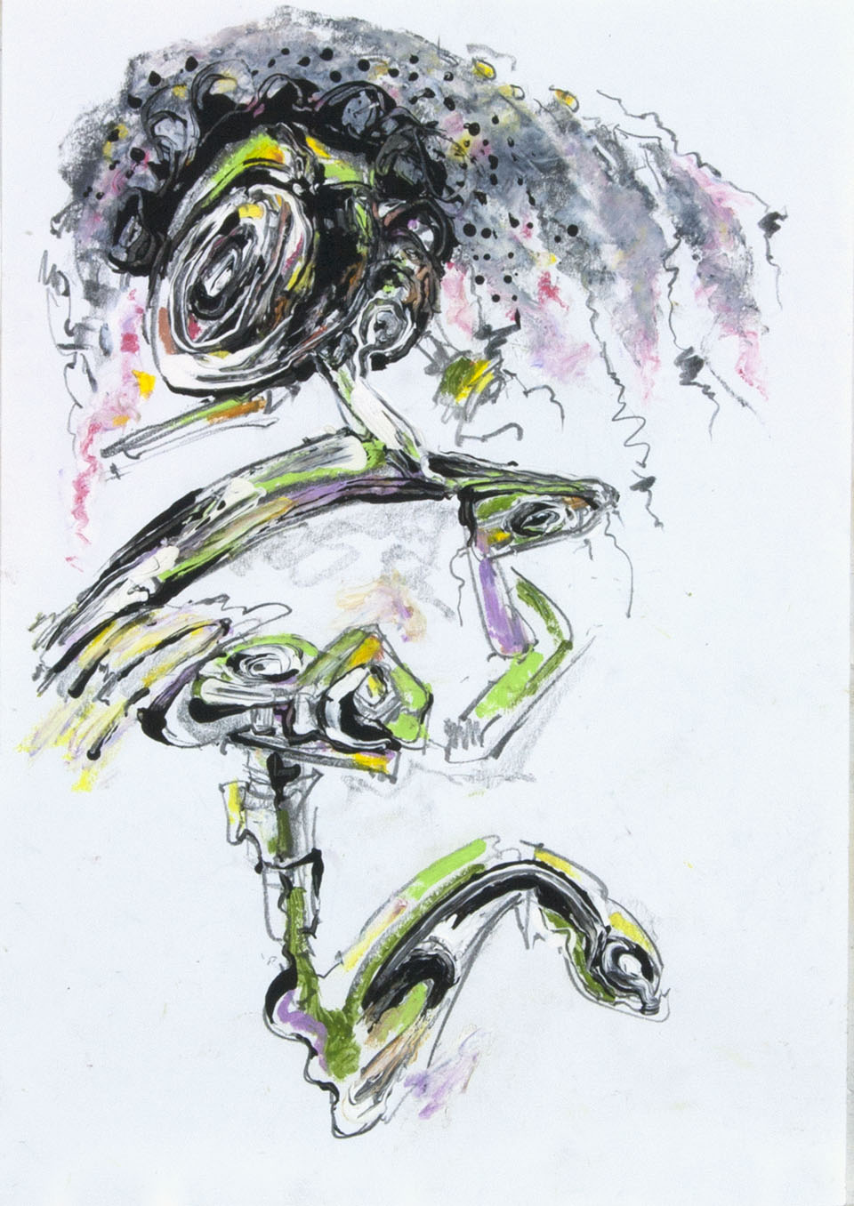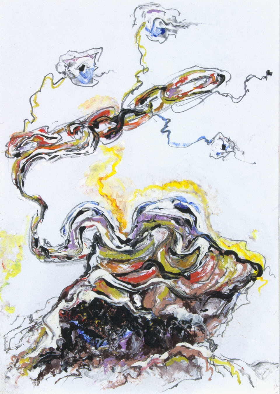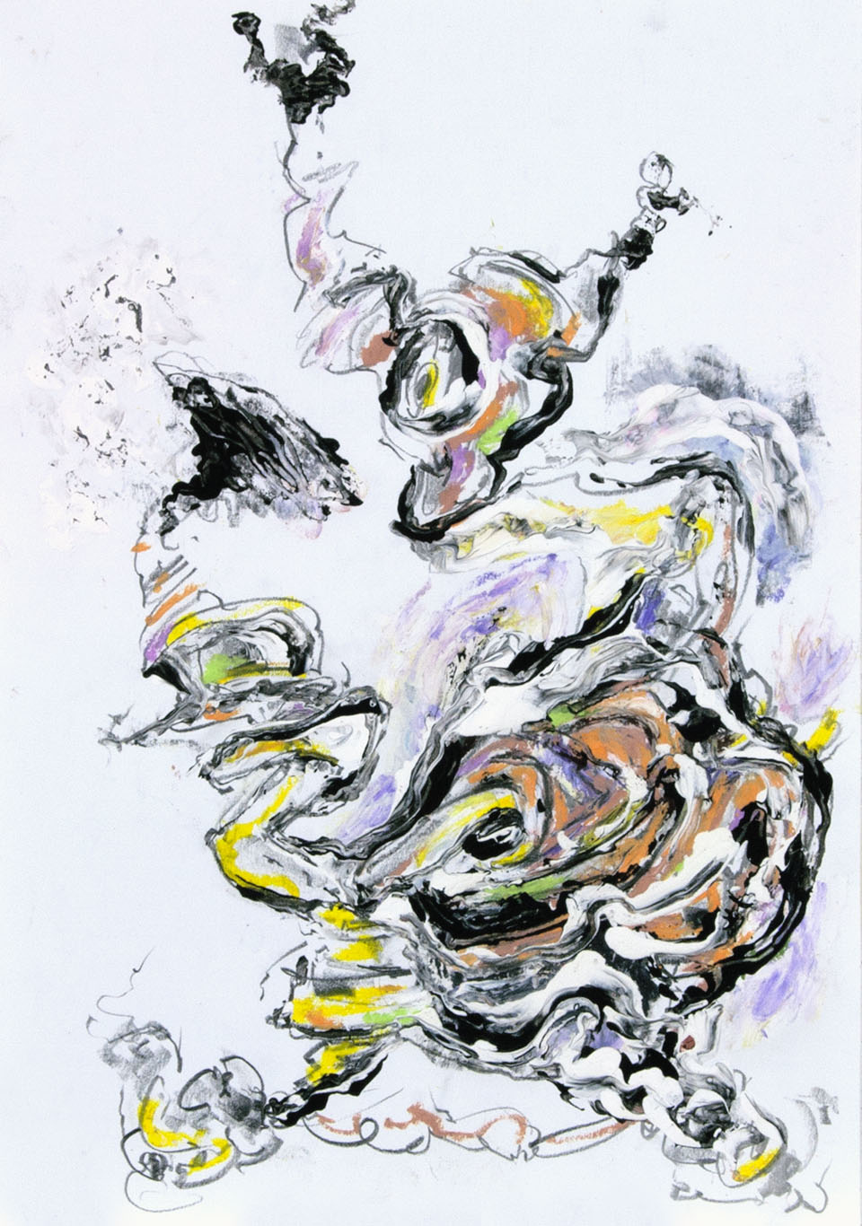 Material: Aquarell-, Acrylfarbe, Bleistift